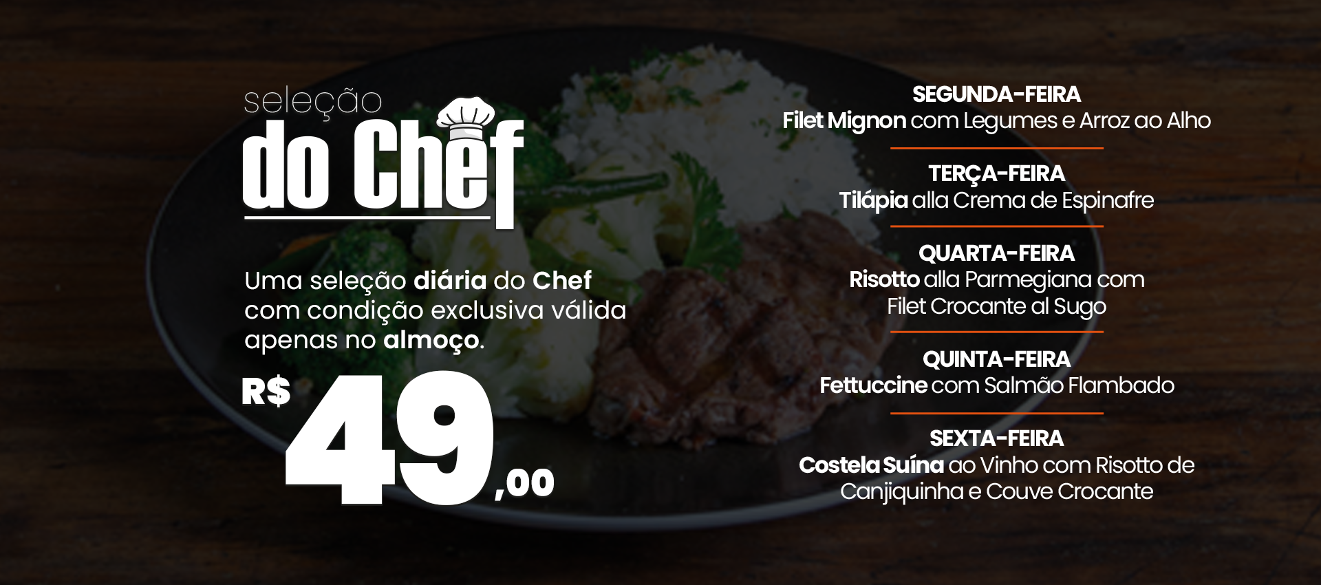 Finais de semana e feriado das 11h30 às 15h e das 18h às 23h